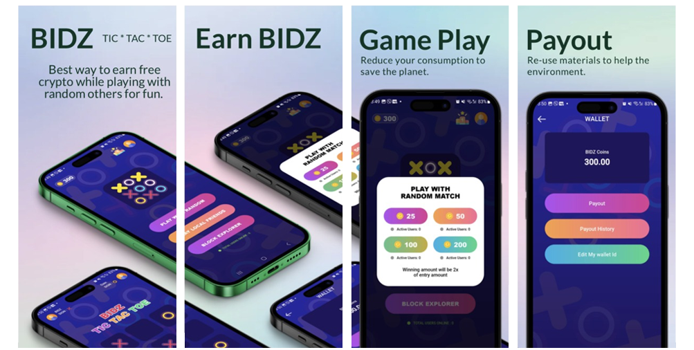 A gamified Play-to-Earn system by BIDZ E-STORE, allowing users worldwide to compete for tokens.